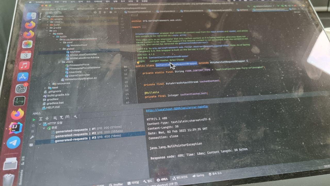 - 이 부분은 우회할 수 있는 수단이 여럿 있다고 하지만 강의에서는 이상한 방법을 쓰더라구요. ContentCachingRequest 로 래핑을 하고, 요청이 다 처리된 뒤에 요청을 읽는다뇨? 설명도 좀 말이 안 됩니다. 다른 방법도 있다고 하니 차라리 나중에 필요할 때 해보는게 좋겠습니다.
