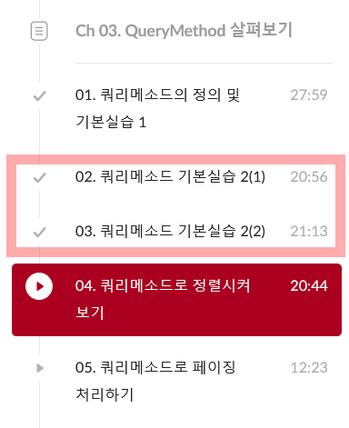 어제에 이어서 기본실습 2 (1, 2) 입니다. 추가적으로 메소드를 뭘 더 만들수 있는지 보는 것 외에는 따로 유의미한 걸 진행하지는 않았습니다. 쿼리 메소드라는게 뭘 쓸 수 있을지 알아야지 쓸 수 있는거니까 그게 중요하긴 하겠죠???