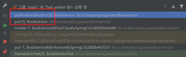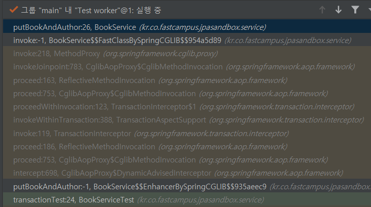 아래 두 가지 상황에서 @Transactional 어노테이션이 적용되지 않습니다. 콜 스택도 좀 다르게 나옵니다.