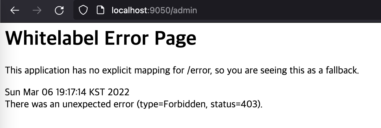 이대로 실행하면 PreAuthorize 에 의해 막히거나 하지 않는다고 하네요. 직접 들어가보니 /admin 도 잘 들어가지는군요. 그래서 설정이 필요합니다.