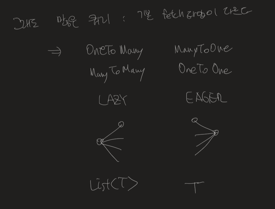 필드 타입이 List가 되는 조회할 게 많은 건 기본값이 lazy, 그렇지 않고 하나만 넣으면 되는 건 기본값이 EAGER 입니다. 알고가야 뒤통수를 안 맞겠죠?