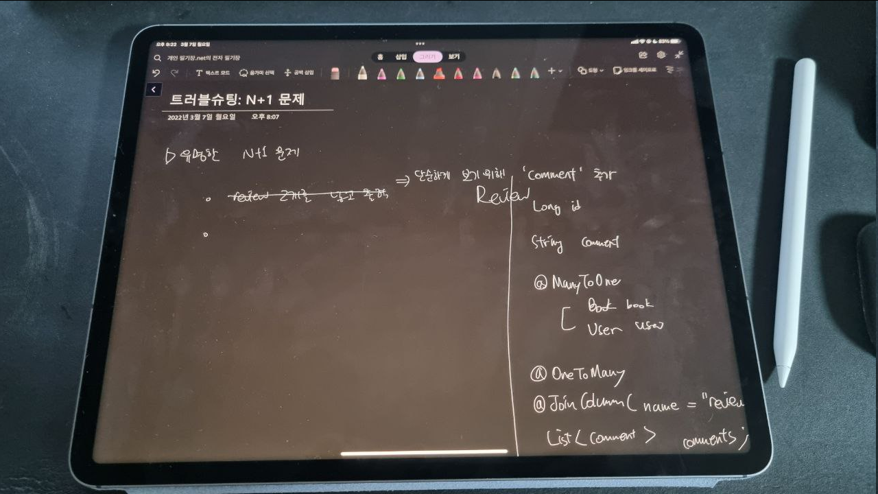 N+1 문제는, ORM 에서 분명 테이블은 한 번 조회했는데 쿼리가 N번 추가로 일어나는 현상입니다. 원인은, 나는 객체 "Blog"(1에 해당) 를 조회했는데 필드인 "comments"(blog의 횟수만큼 == N) 까지 딸려오기 때문입니다.