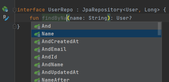 - 예를 들어서, findByName(String name) 으로 메서드를 정의하면 User.name 을 기준으로 일치 여부를 확인해서 줍니다.