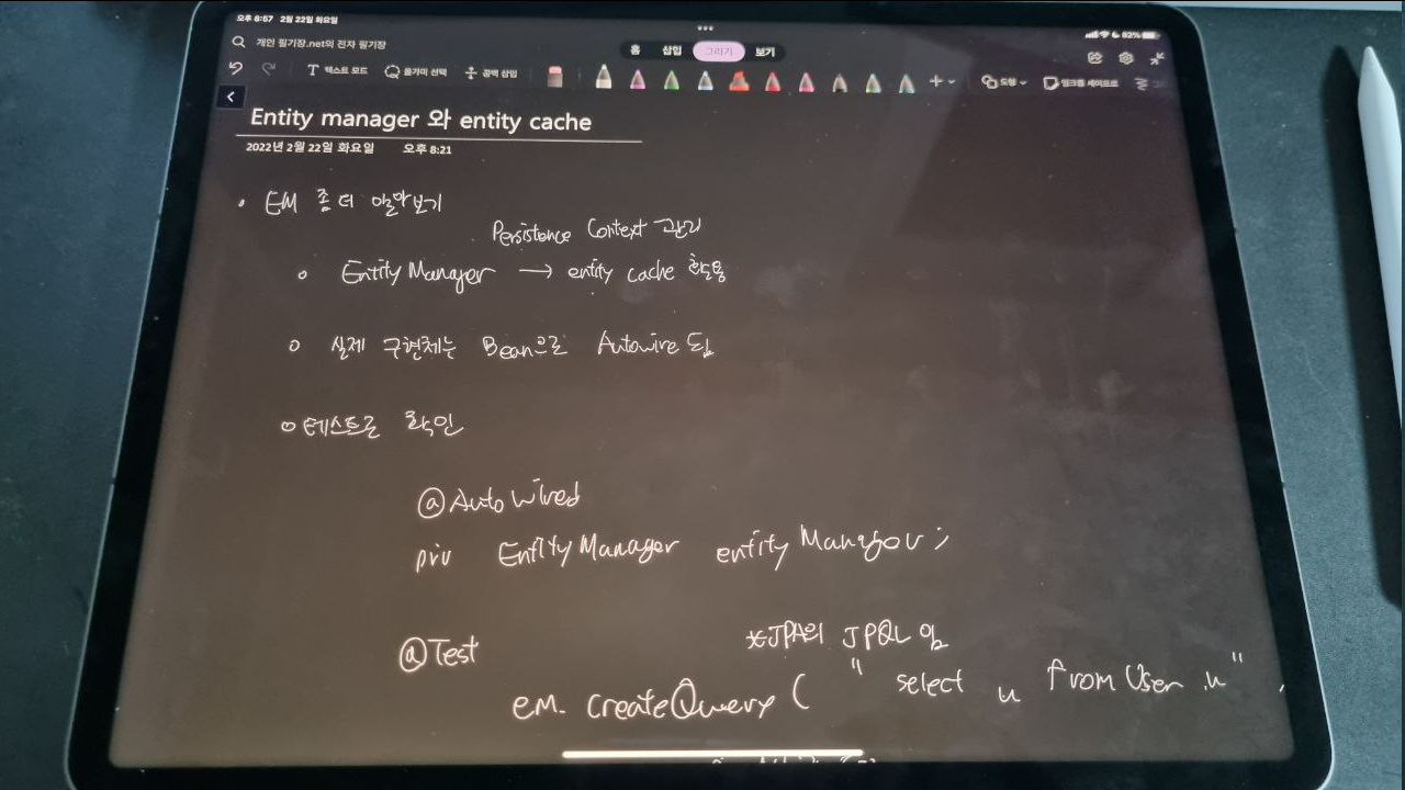앞서 JPA에서 엔티티의 영속을 다루는 범위인 Persistence Context 를 다루는 인터페이스는 interface EntityManager 라는 것을 살펴봤습니다. 먼저 이걸 테스트에서 직접 불러와서 사용해봅니다.